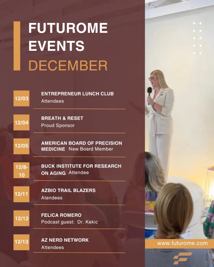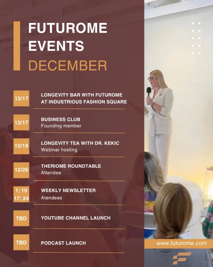 Invite Dr. Adrijana to your next event. We deliver science-backed insights on longevity, performance, and the future of human optimization.